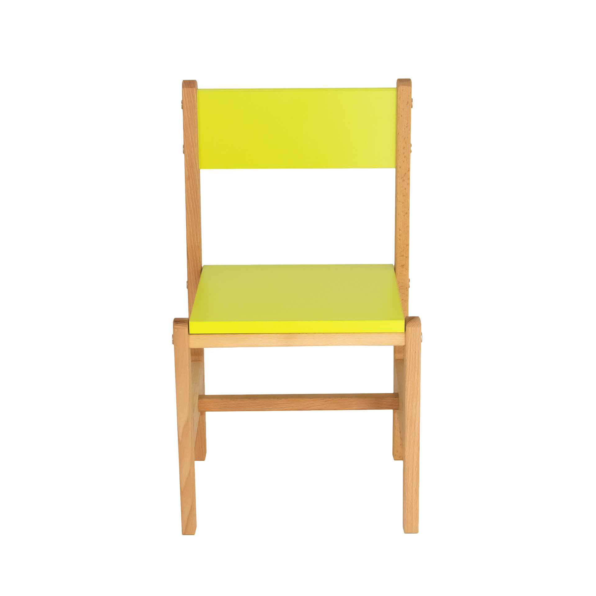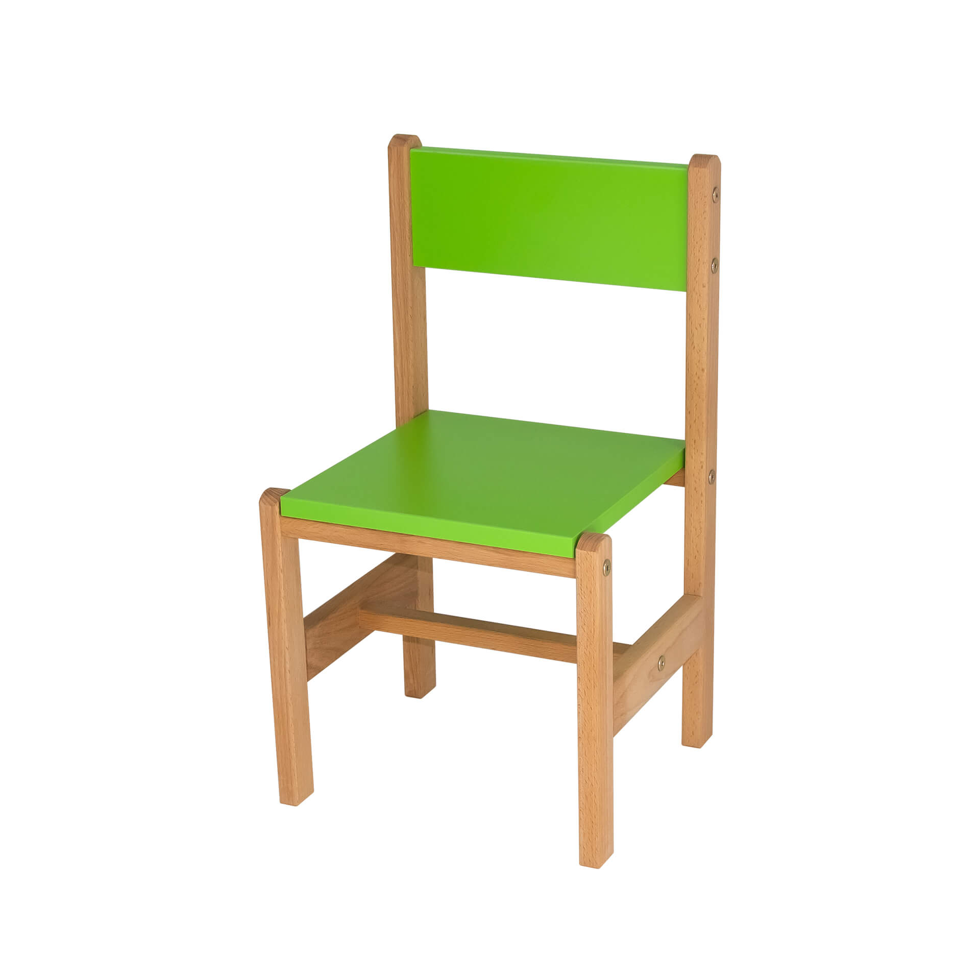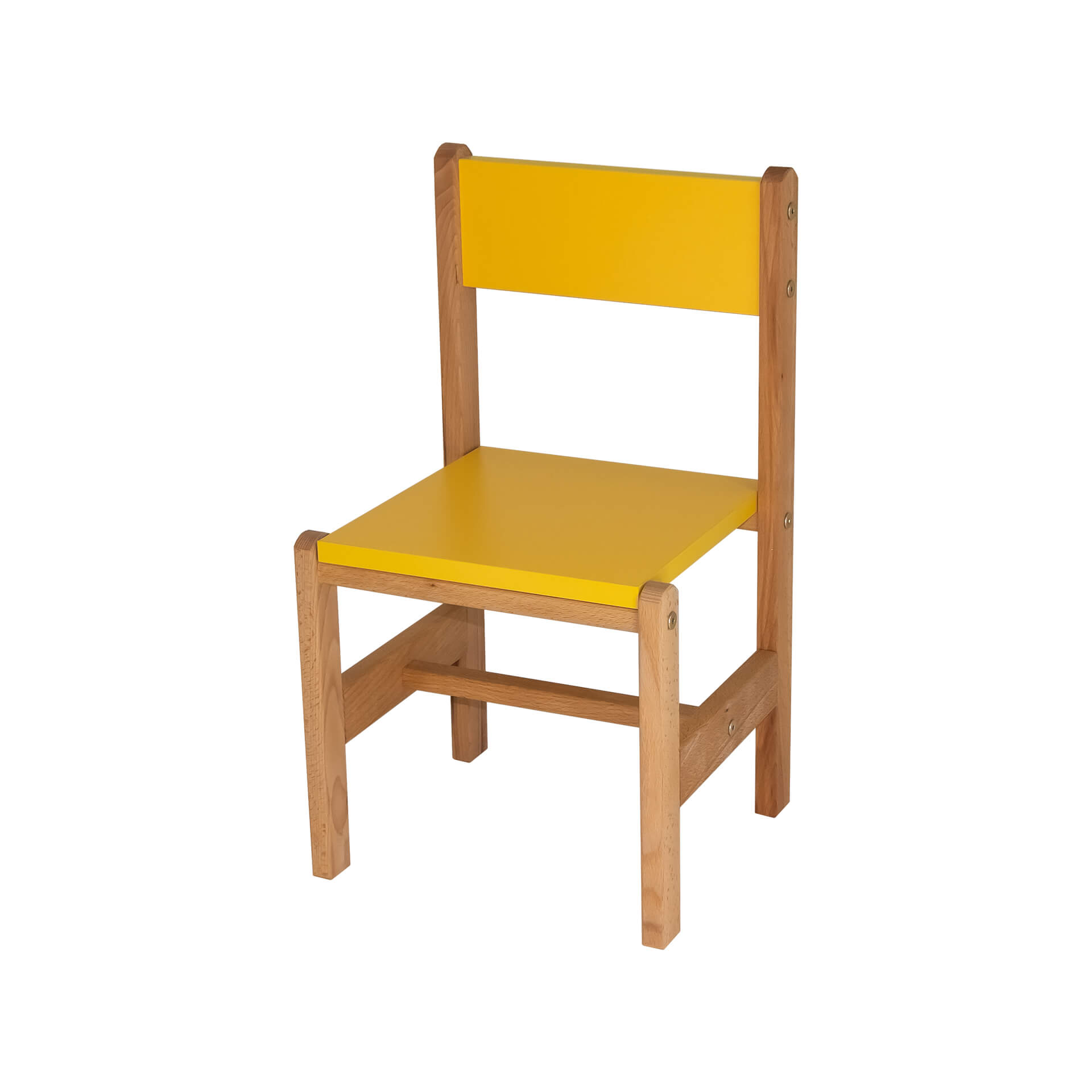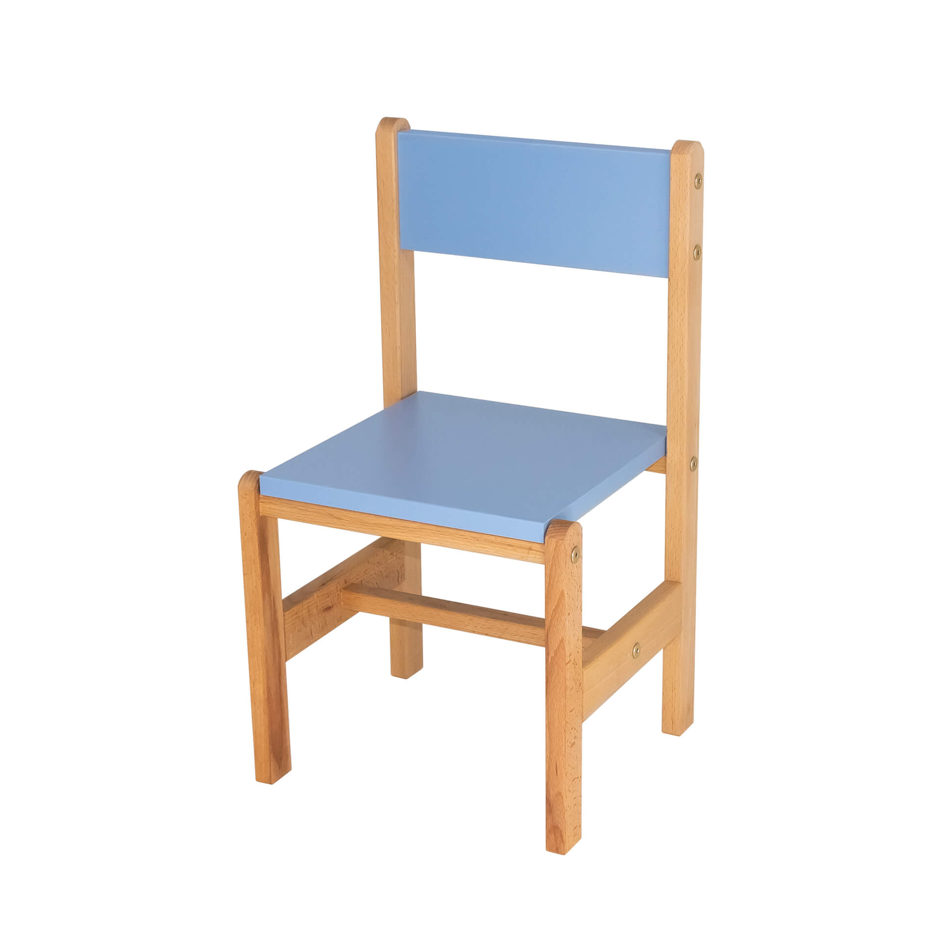 Каркас стульчика выполнен из древесины твёрдой породы - бук, сидушка и спинка из цветного ЛДСП.