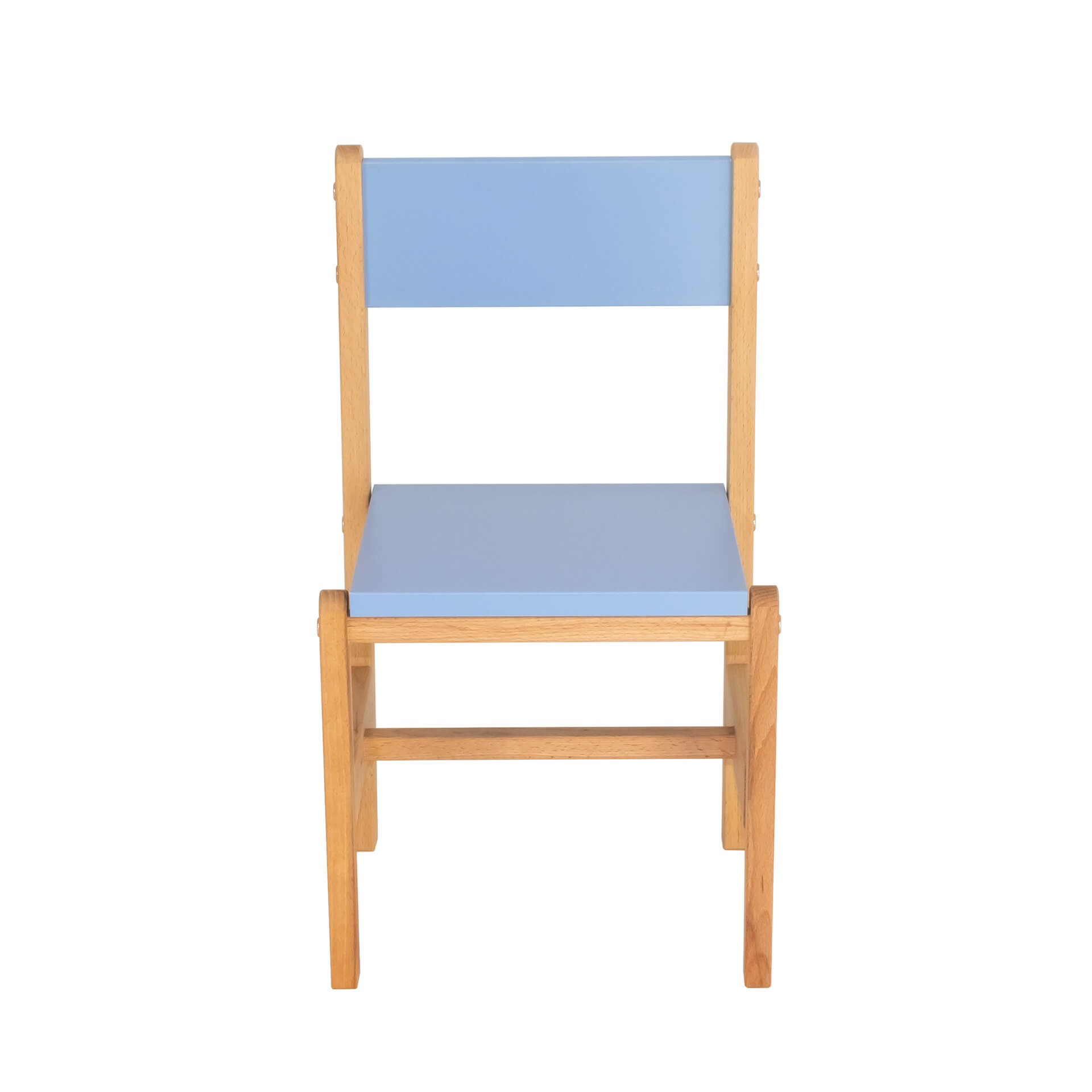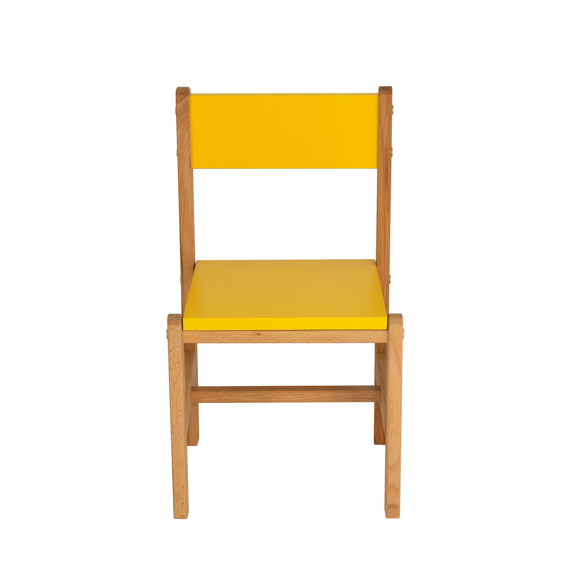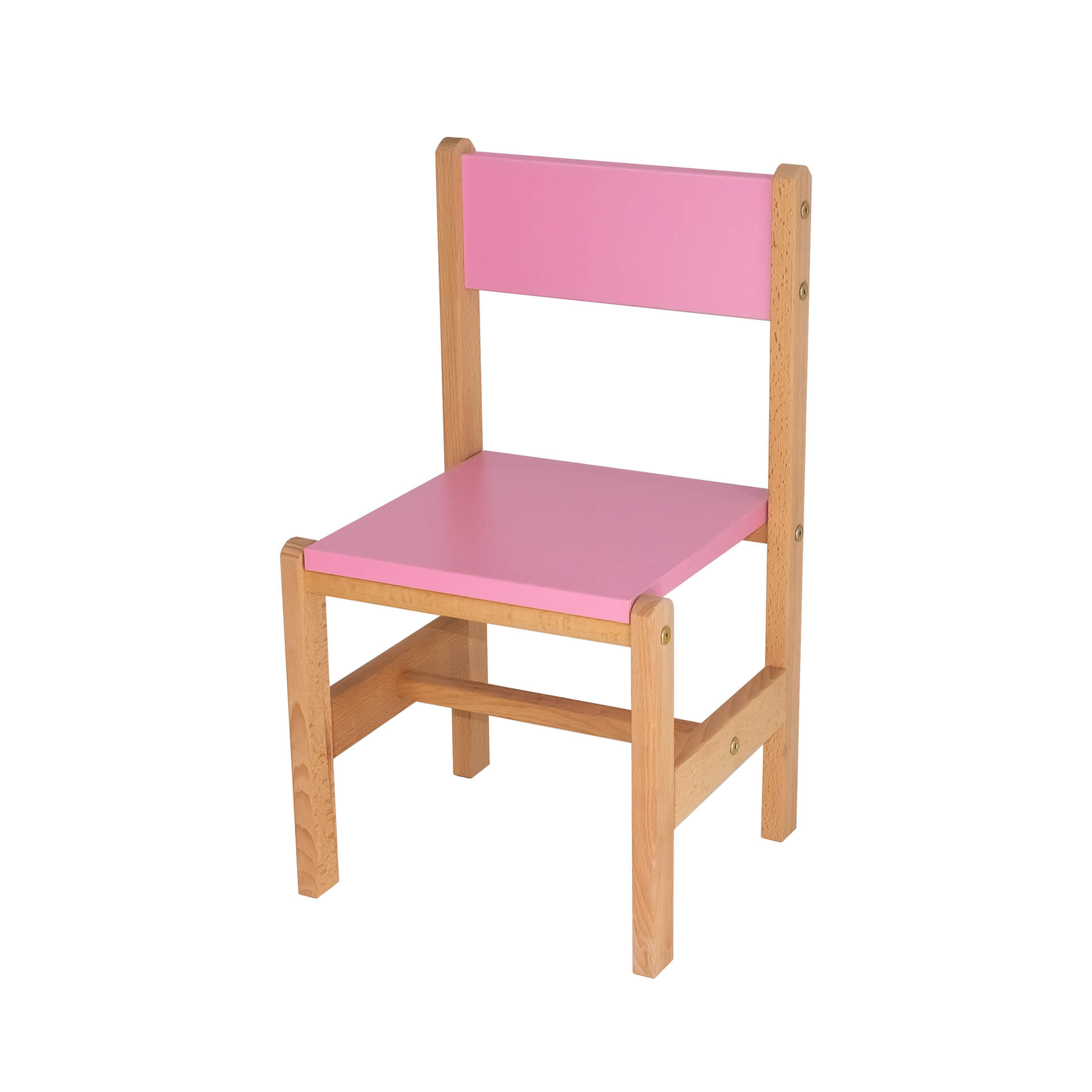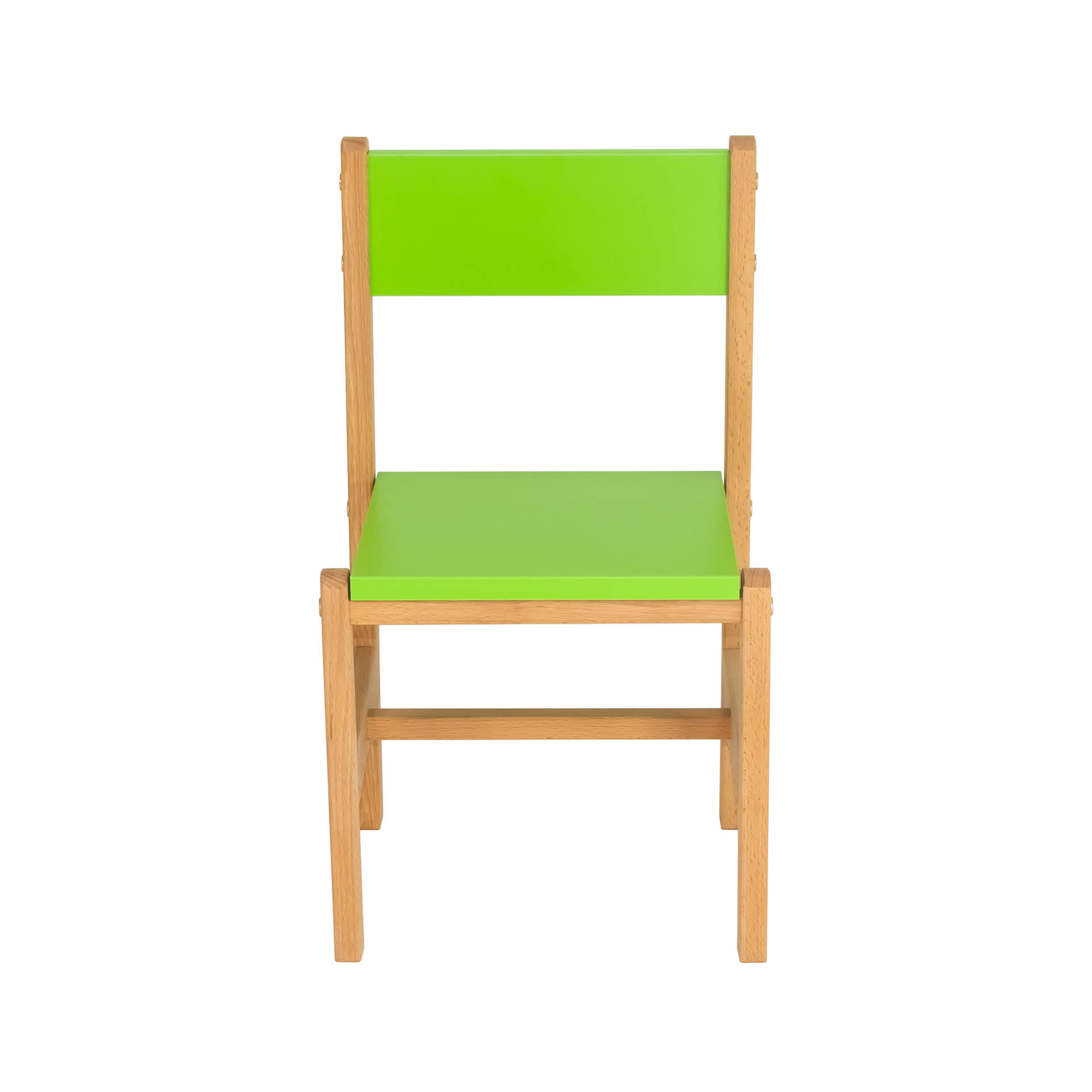Каркас стульчика выполнен из древесины твёрдой породы - бук, сидушка и спинка из цветного ЛДСП.