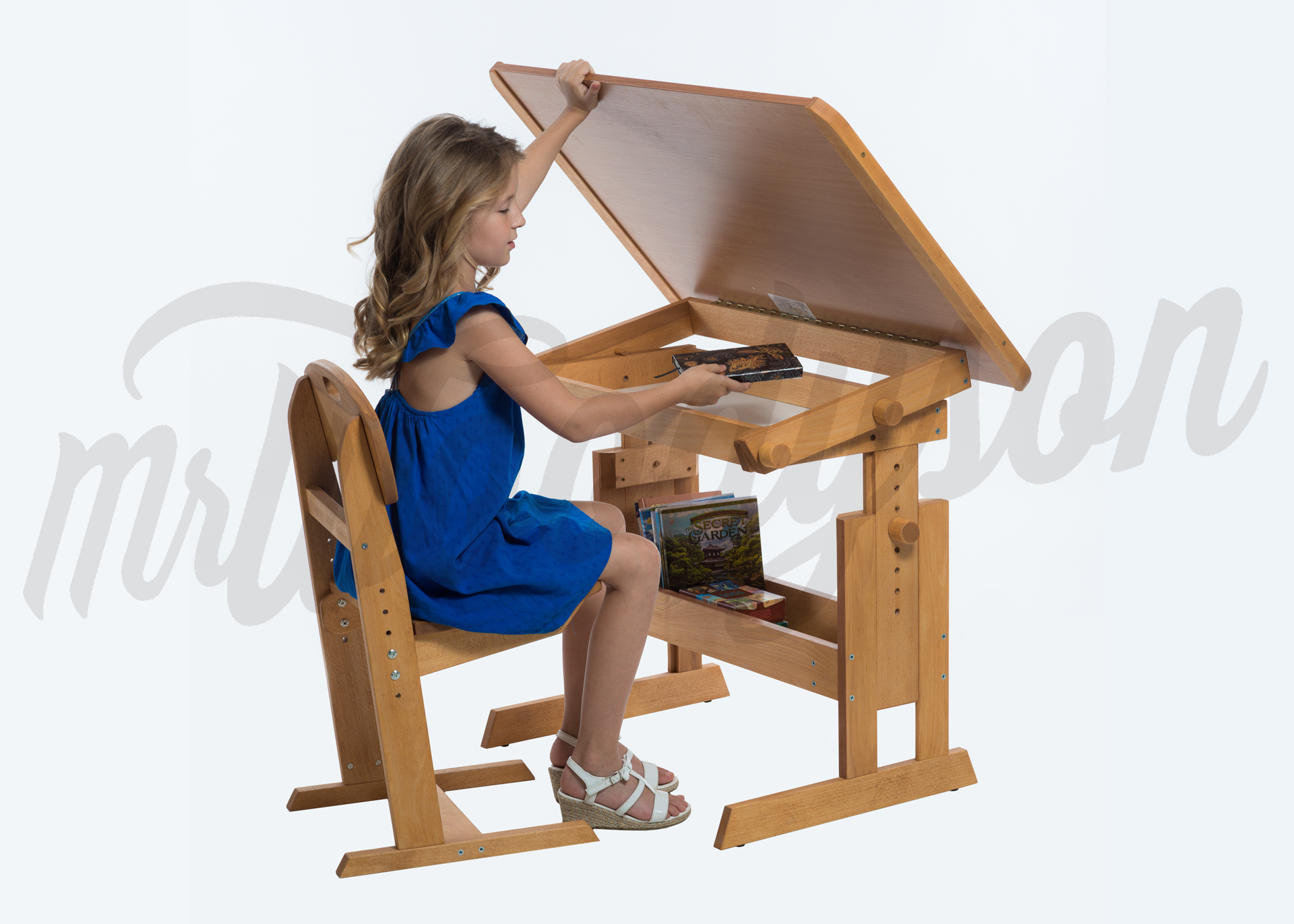 Стільниця може бути розташована горизонтально - як стіл, і під кутом - як парта.